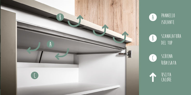 Per ovviare al problema del surriscaldamento che si potrebbe sviluppare sotto il piano cottura ad induzione, Veneta Cucine inserisce un pannello isolante che permette di mantenere un’aerazione sufficiente in tutta la zona. Ormai sempre più diffuso nelle cucine di nuova generazione, il piano cottura ad induzione rappresenta l’evoluzione moderna dei vecchi fornelli a gas, […]