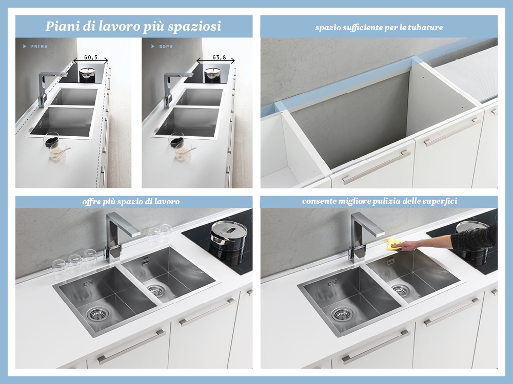 Il piano di lavoro è la parte della cucina più esposta all’uso quotidiano; per questo deve essere robusto, resistente e pratico, oltre che bello. Non solo: tra i requisiti fondamentali vi è un’ampiezza adeguata per permettere di svolgere al meglio le normali attività; se la profondità aumenta da 60,5 cm a 63,8 cm, lo spazio […]